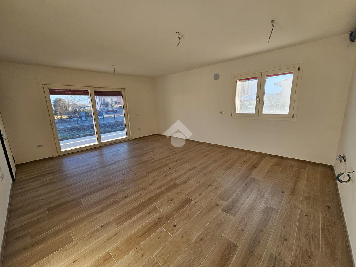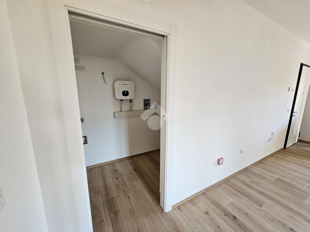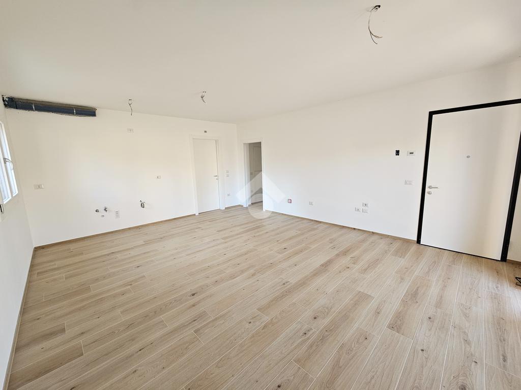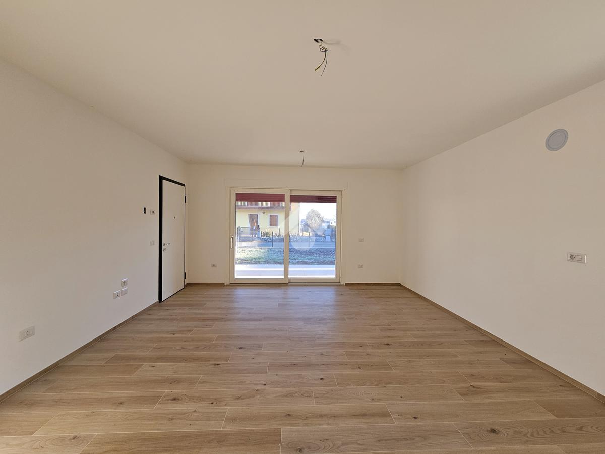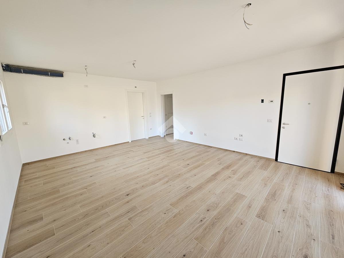 L'ingresso si apre sull'open space di 30 metri quadrati, interamente dedicato alla zona giorno, impreziosita da una porta finestra di generose dimensioni, la quale dona luce all'intero appartamento; la stessa permette l'accesso diretto al giardino.