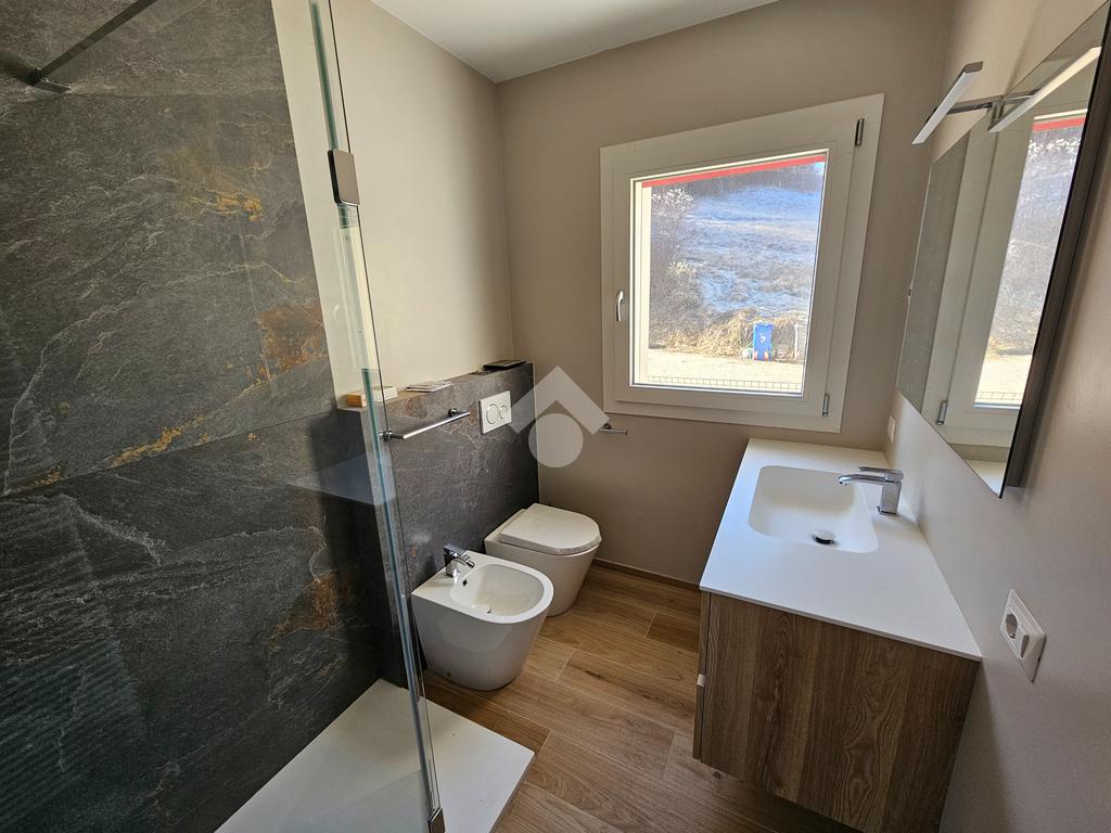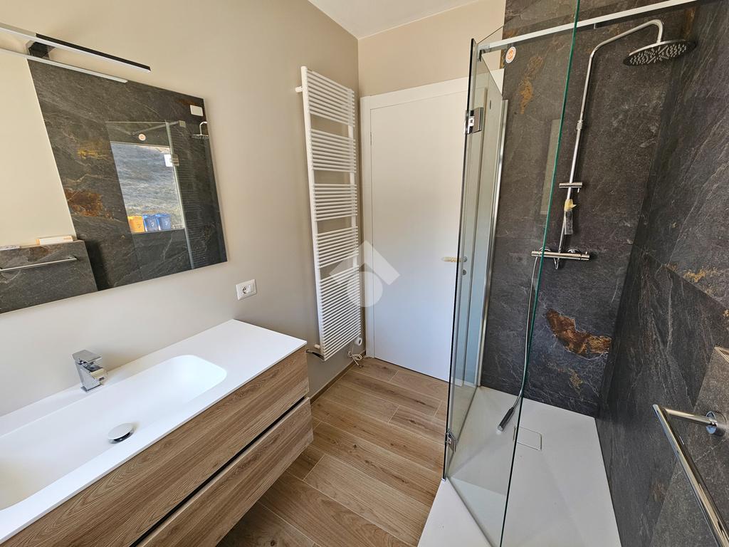 Il bagno è finestrato, attrezzato con doccia e sanitari filomuro.